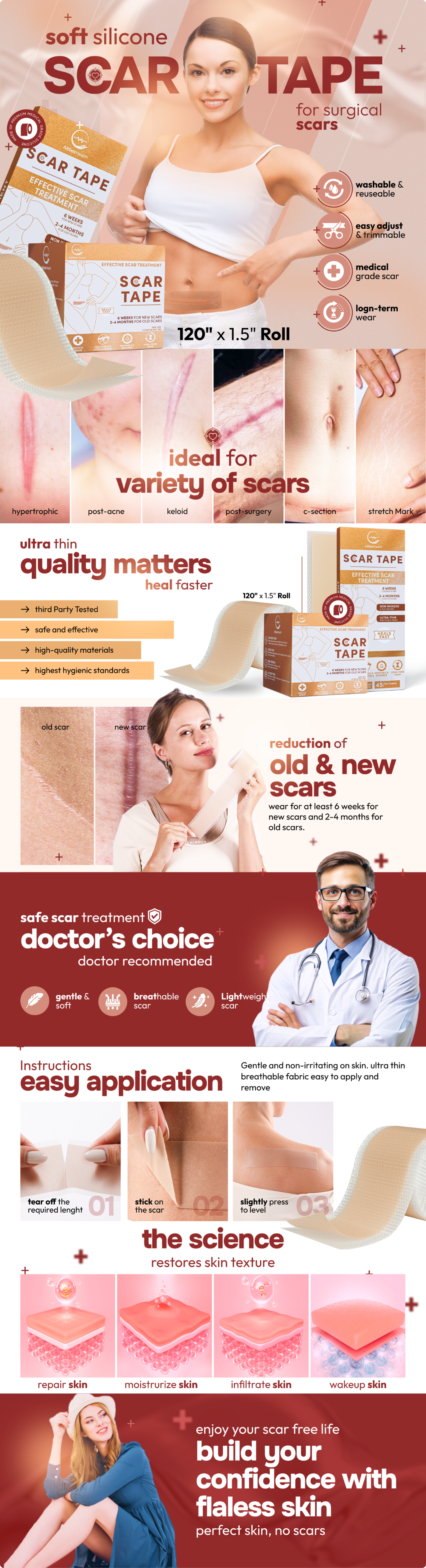The client approached us seeking standout Amazon visuals for their Medical Grade Silicone Scar Sheets. Our goal was to design listing images and premium A+ content that set their product apart from competitors.