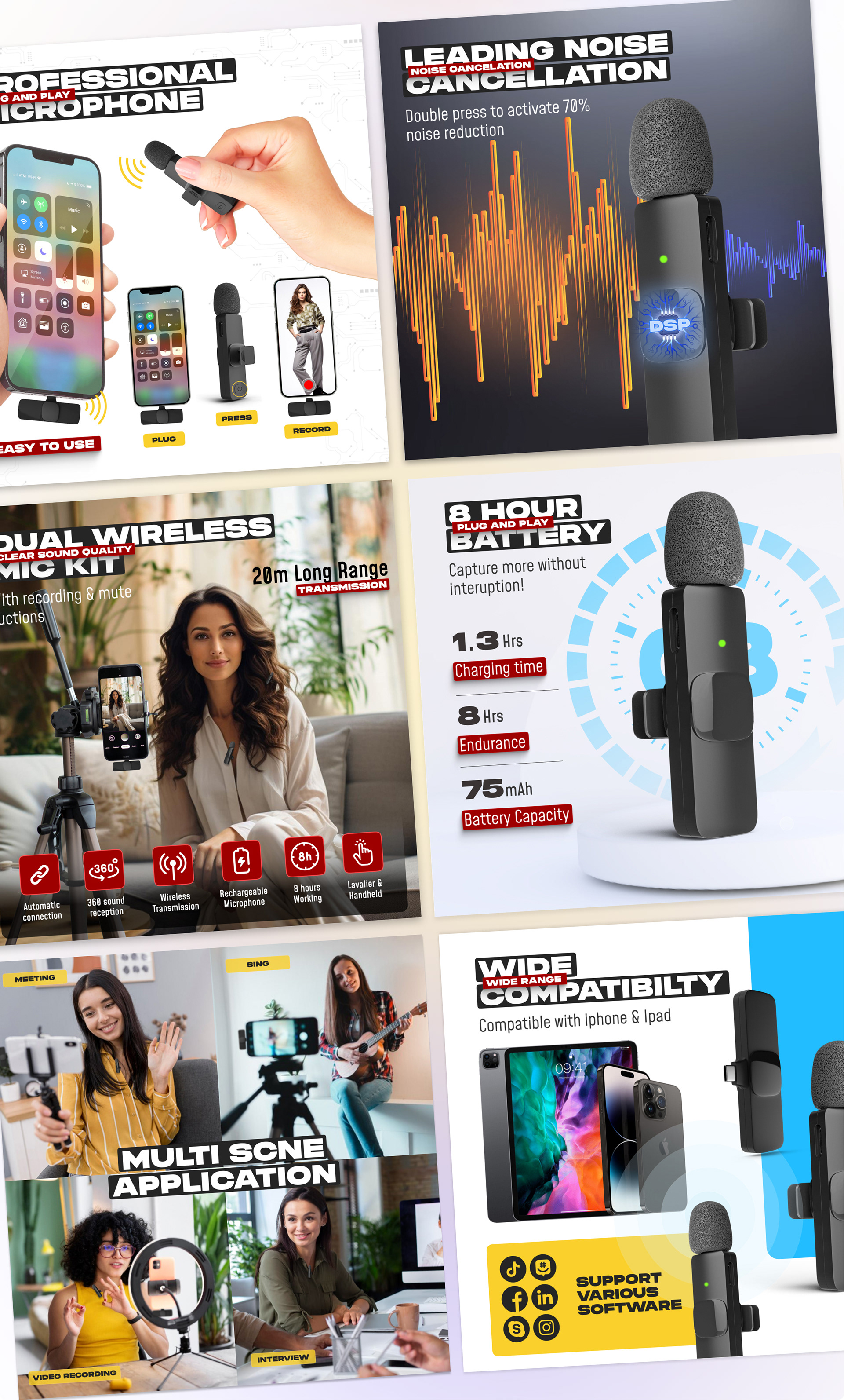 My recent project aimed to design the Amazon listing for a Wireless Microphone through comprehensive art direction, 3D renders, and the creation of Amazon listing images and Premium A+ content. This approach is not just about design a product but establishing it as the top choice within its niche.