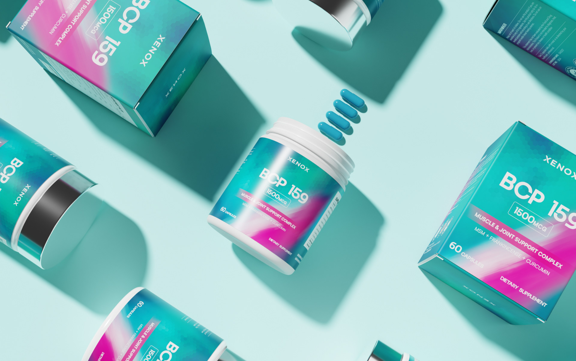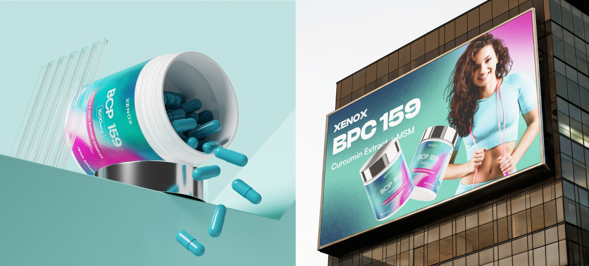 XENOX BCP 159 - Supplement PACKAGING DESIGN & Branding - a bold step into the future of sports nutrition branding. This project involved crafting premium packaging and high-impact Amazon visuals for Xenox’s advanced peptide supplement, BCP 159. The objective was to design a performance-driven, science-backed aesthetic that resonates with athletes and health enthusiasts while standing out on Amazon’s competitive marketplace. This project reflects expertise in branding, packaging design, and eCommerce visual strategy, blending bold design with functional, sales-oriented product presentation tailored for Amazon success. BRANDING | PACKAGING | 3D MOCKUPS | AMAZON VISUALS | label design