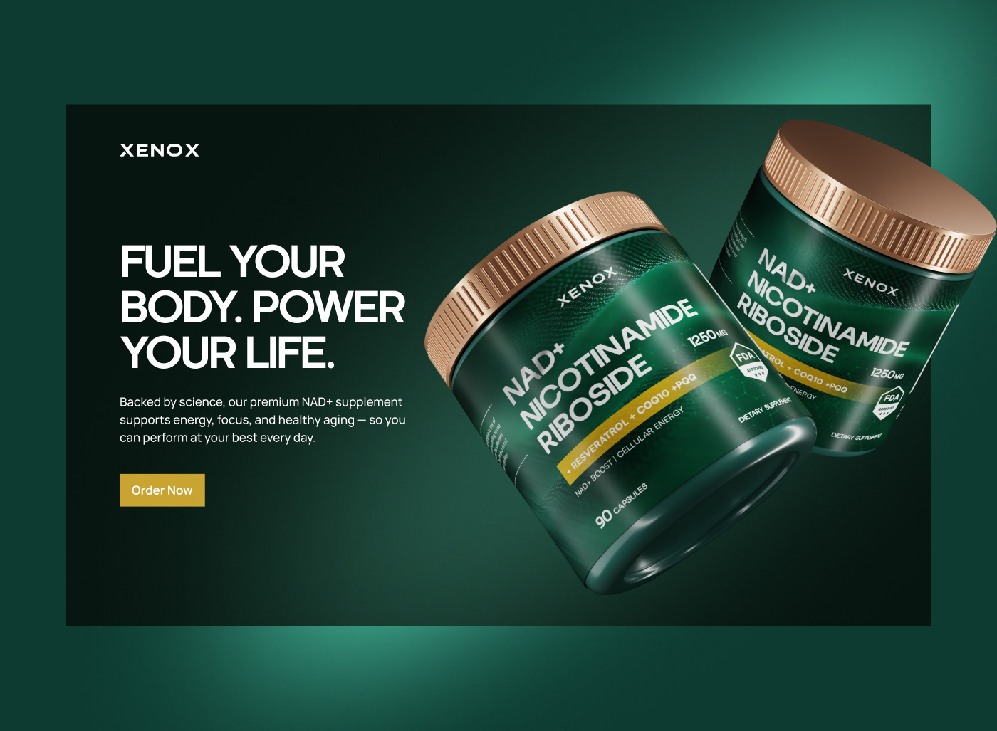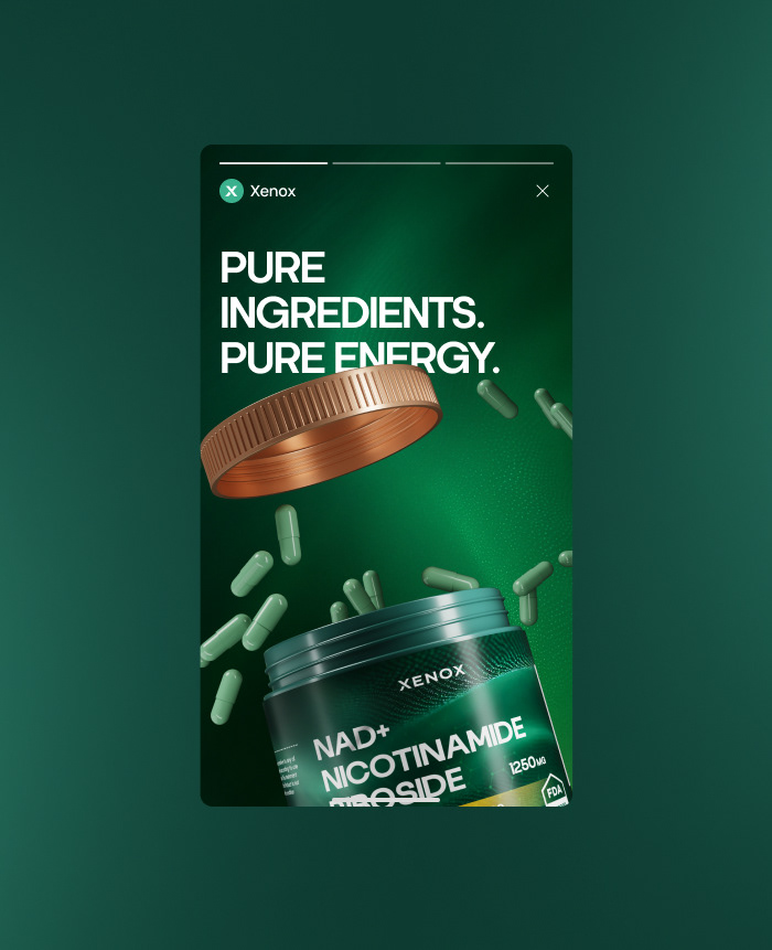 Xeon brand, approached us, their vision was clear: to create a supplement identity that felt modern, energetic, and minimal. They wanted a design language that could stand apart in a crowded wellness market while staying sleek and professional. We started with the foundation building the brand’s visual DNA through label and packaging design. The look was kept bold yet minimal, with deep green tones and metallic highlights to signal energy, strength, and purity. From there, we crafted 3D mockups that gave the product a premium, shelf-ready presence, allowing the brand to visualise its impact before launch. To complete the system, we developed a brand kit ensuring every touchpoint, from packaging to digital assets, carried the same cohesive, modern energy. The result is a supplement brand that feels powerful, trustworthy, and designed for a global stage.